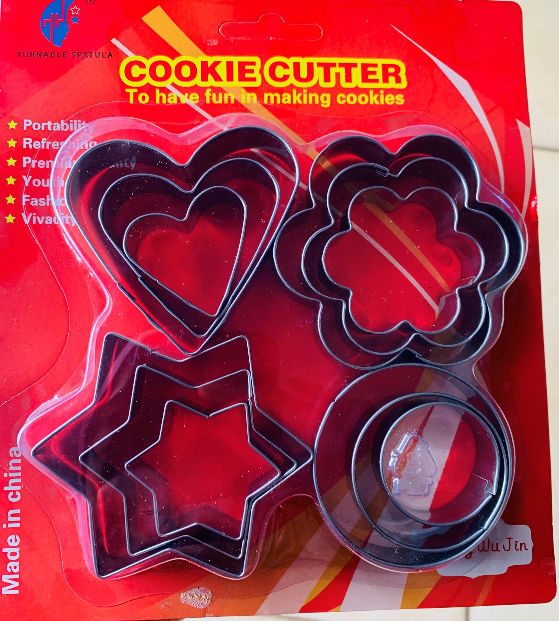 4 Formes d'emporte pièces: Coeur, rond, étoile et fleur. Pour couper les biscuits ou la pâte à sucre.
