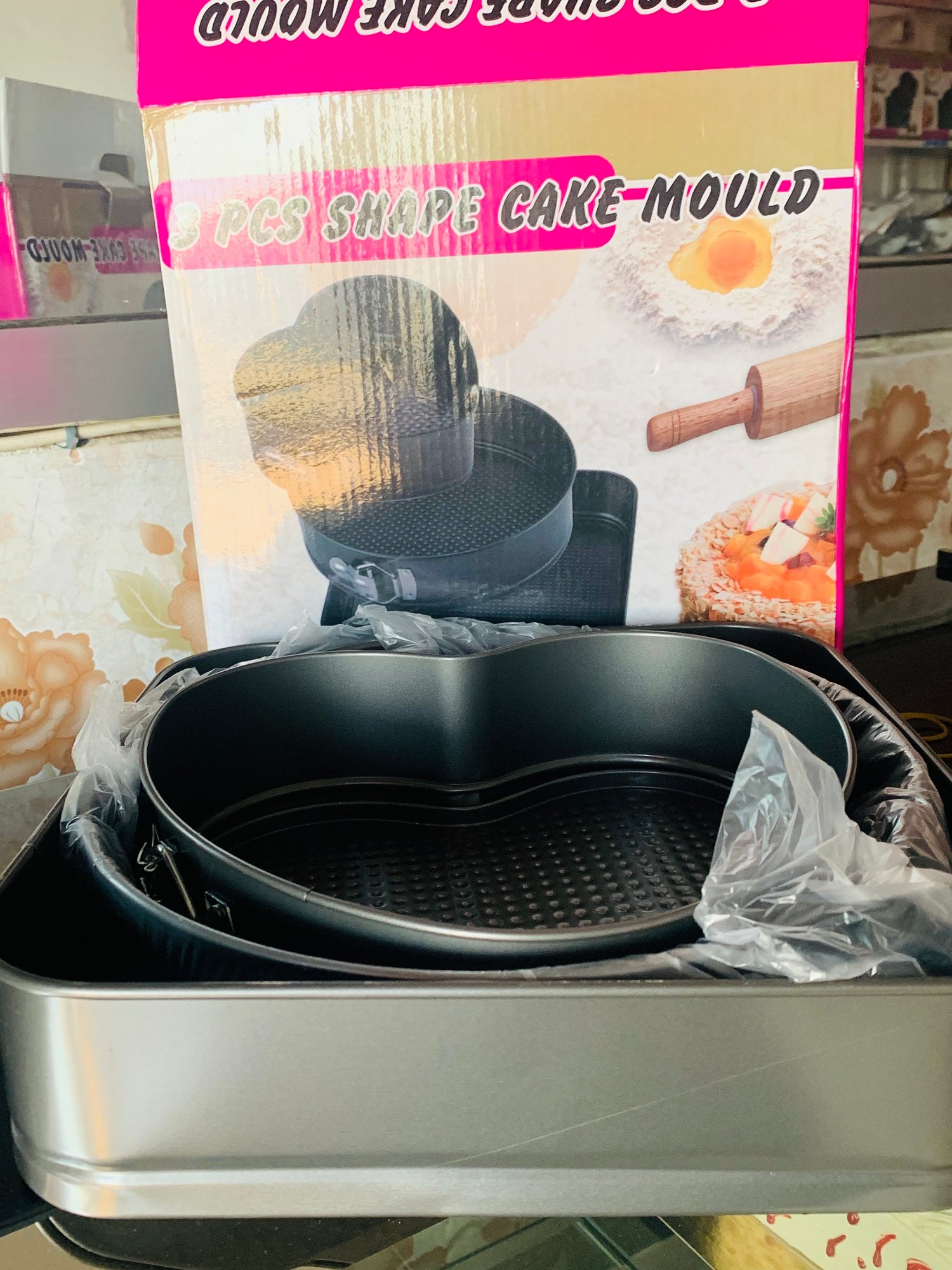 3 formes de moules dans le packets: Coeur, rond et carre de 28 cm.